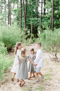 If you have multiple children, don’t feel like you need to put them all in the same type of outfit. For example, one of your daughters could wear a dress and flats, while the other wears a skirt and boots. One of your sons could wear a bowtie, while the other one wears suspenders. Mixing up the wardrobe pieces will bring a great visual interest to the photos.